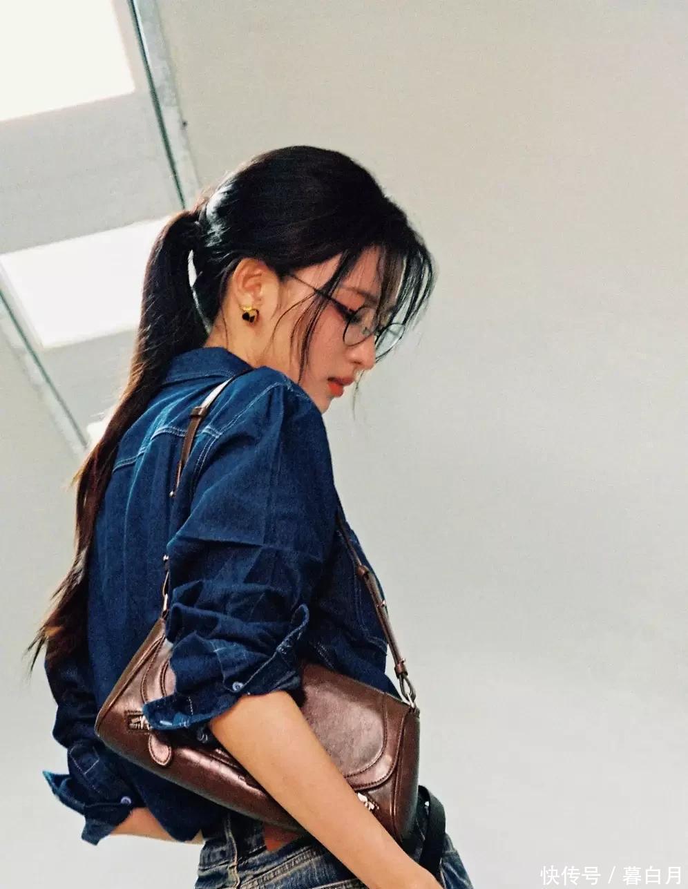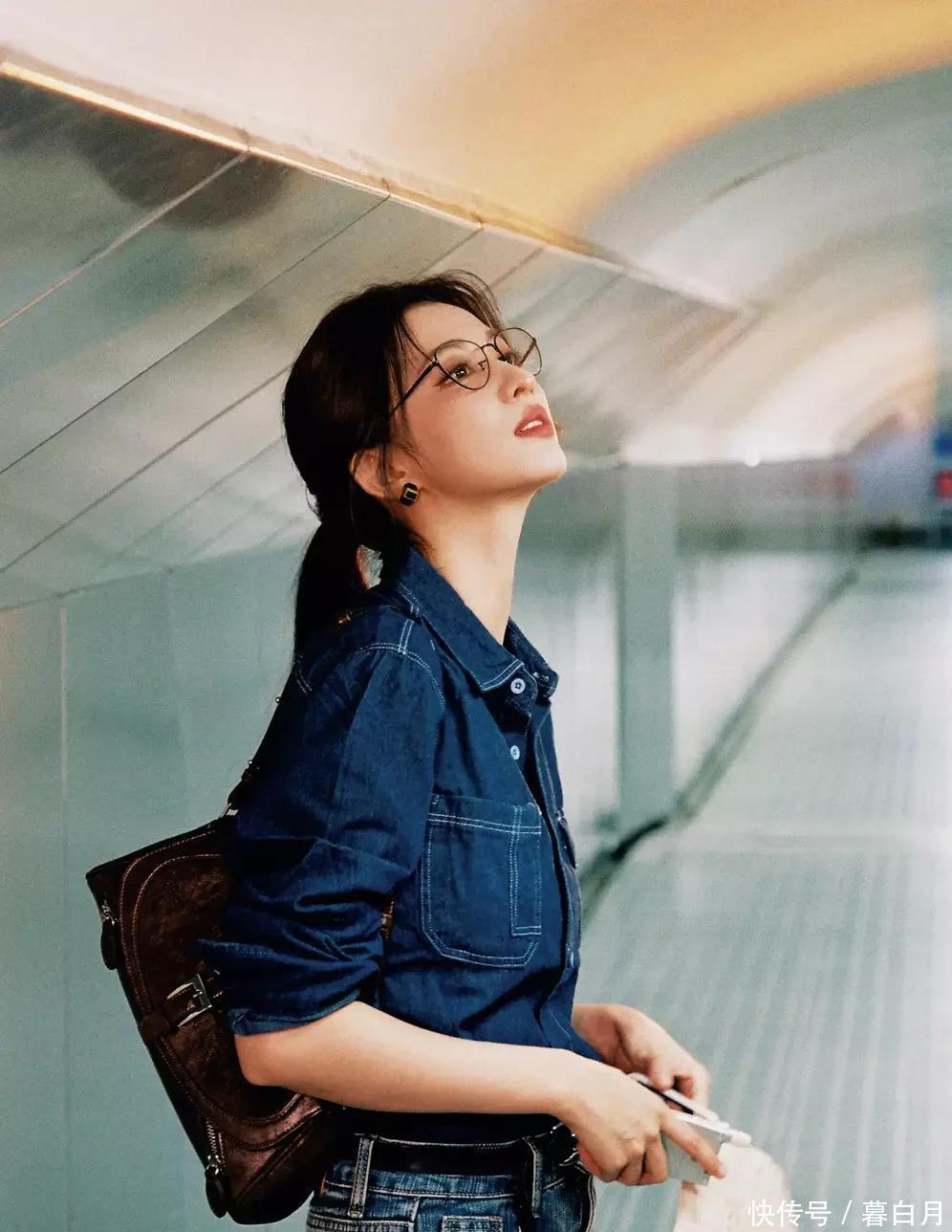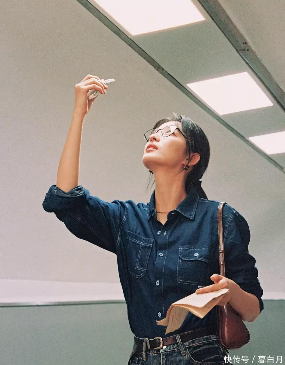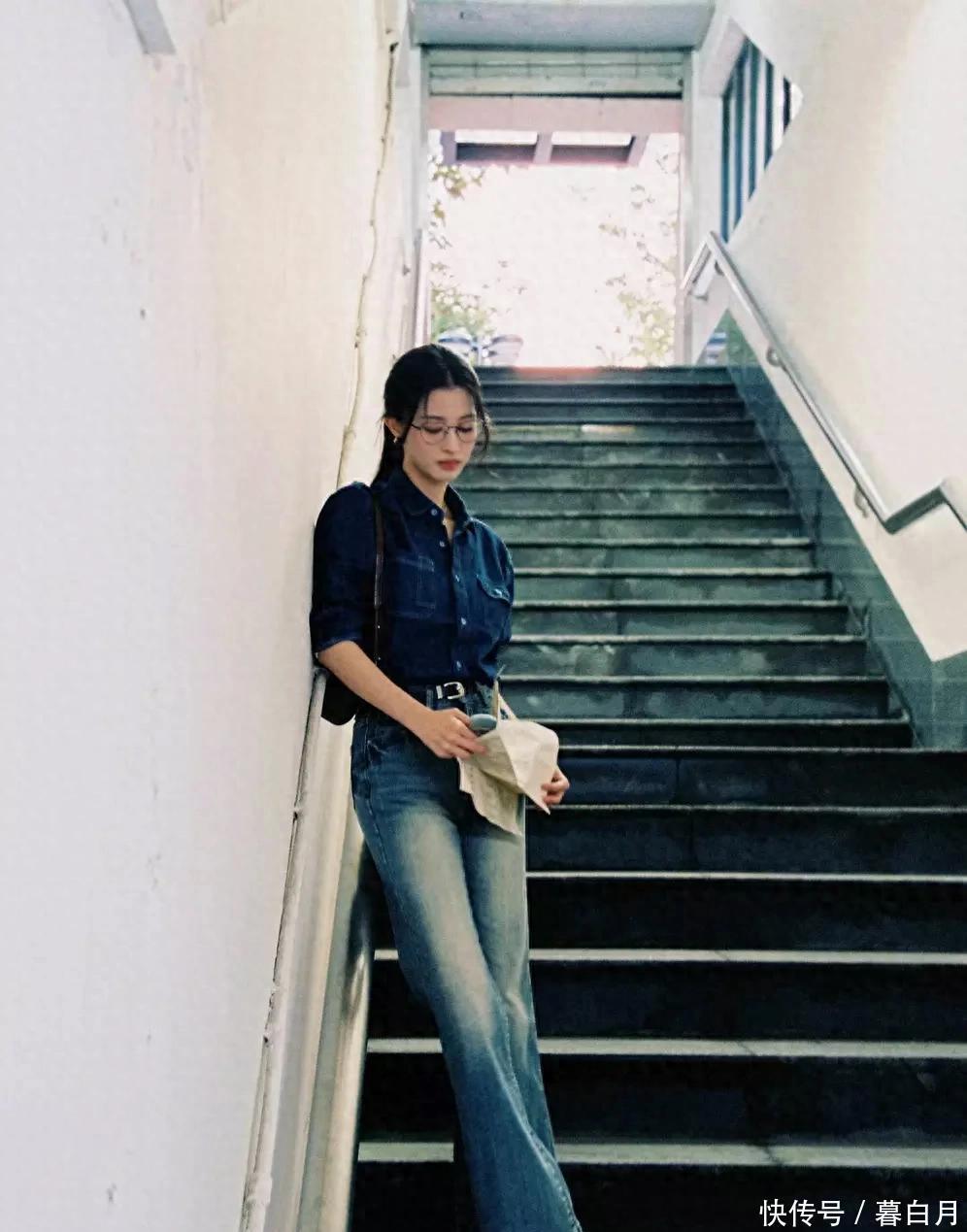 下面的穿着方面,她进行了简单的搭配,搭配的是一条具有经典百搭特性的蓝色牛仔裤,这条牛仔裤和上面身体部位所穿着的衬衫,在色彩的相关系列方面,形成了一种和谐的统一状态,整个身体整体的造型呈现出干净利落的特征,呈现出的状态没有任何一点多余的部分。像这种“蓝色加上蓝色”的相同色彩系列的穿搭穿搭方式,呈现出的高级感觉显得十分充足,就好像一位刚刚从图书馆走出来的,人们眼中的学霸类型的人物,又或者是城市当中一位在品味这方面具有独特之处的职场工作方面的精英人物 。